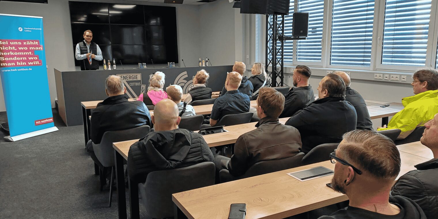 Beim BranchenForum der Handwerkskammer Cottbus am 23. April wurde einmal mehr deutlich, wie wichtig Austausch, Innovation und persönliche Begegnungen für die Zukunft des Handwerks sind. In besonderer Atmosphäre – unter anderem im LEAG Energie Stadion – trafen sich 28 Vertreter aus Metallbau und SHK Gewerken, um gemeinsam Impulse zu setzen und aktuelle Herausforderungen zu diskutieren.