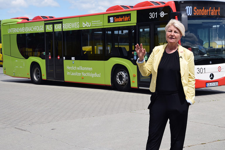 Unter dem Motto „Nachfolge ist weiblich - in der Wirtschaft“ hielt der „Lausitzer NachfolgeBus“ am heutigen Dienstag auf dem Betriebsgelände der Terpe Bau GmbH in Spremberg-Terpe. Die BTU Cottbus-Senftenberg hatte 20 Studentinnen und zwei Schülerinnen vom Max-Steenbeck-Gymnasium zur Tour eingeladen, um diese Branche und die Herausforderungen als Unternehmerin kennenzulernen.