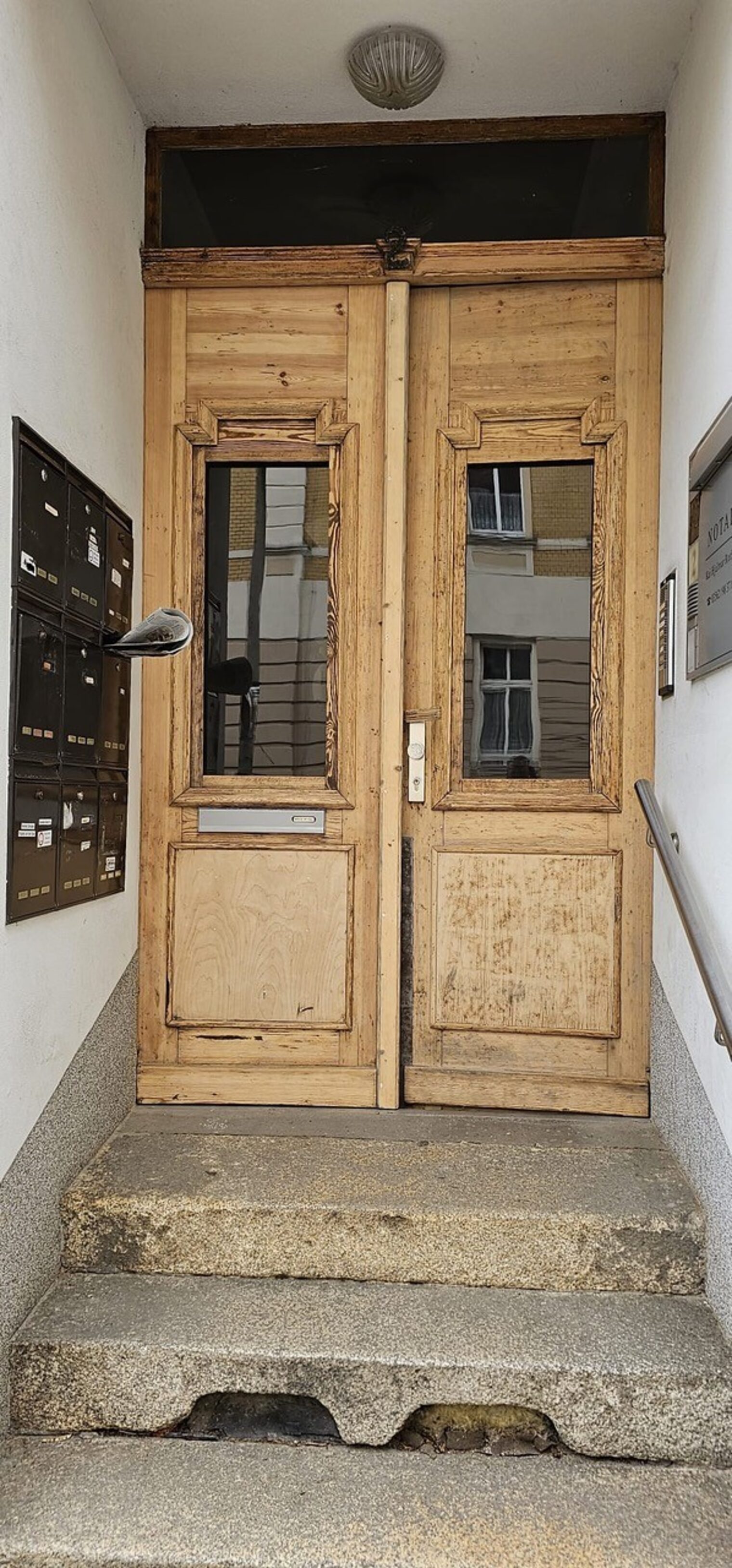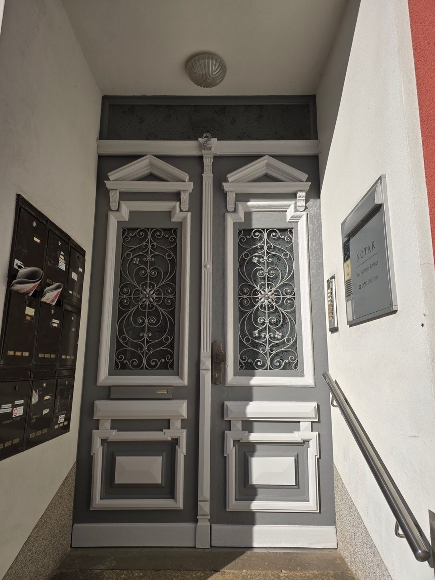 Aus dieser alten Eingangstür wurde dieses Schmuckstück. 2025 hat die Tischlerei Kochan für ihr Engagement im Denkmalschutz den Bundespreis für Denkmalpflege verliehen bekommen.