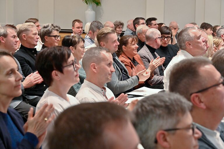 Die Chefin der Staatskanzlei, Ministerin Kathrin Schneider, würdigte in ihrer Festrede die nominierten Handwerkerinnen und Handwerker: „Denkmalschutz wäre ohne die Handwerkskunst nicht möglich – es ist die Kompetenz, das Engagement und die Leidenschaft der Handwerkerinnen und Handwerker, die mit Präzision und Respekt die Substanz unserer Geschichte bewahren. Sie sind es, die durch ihre Arbeit nicht nur alte Gebäude restaurieren, sondern auch unsere Identität und kulturelle Vielfalt erhalten. In einer schnelllebigen, digitalen Welt erinnert uns die Denkmalpflege daran, wie wertvoll traditionelle Techniken und gewachsenes Wissen sind. Das ist gelebte Nachhaltigkeit, die Ressourcen schont und unsere Vergangenheit lebendig hält.“