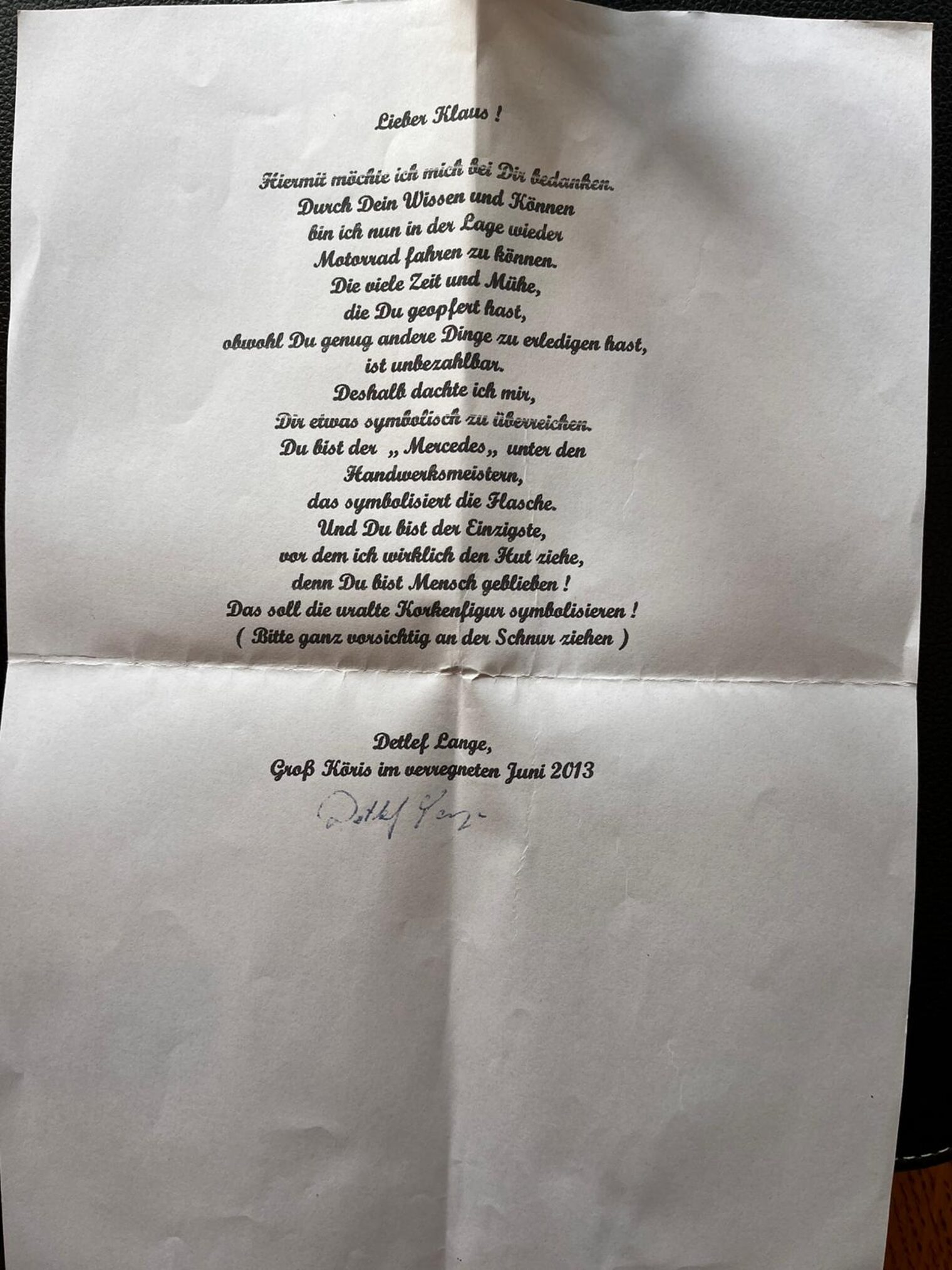 Ein Kunde bedankt sich bei Klaus Janetzki für seine Arbeit und bodenständige Art und Weise.
