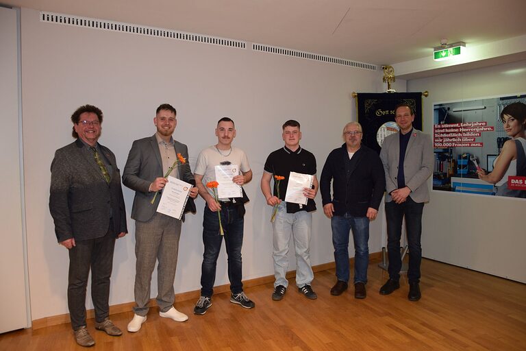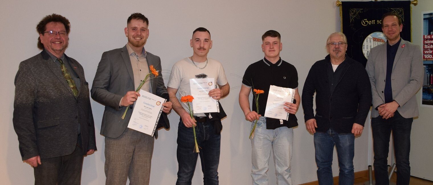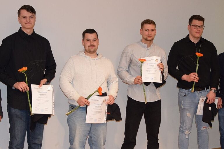 Der Kreishandwerksmeister Guntram Bialas, Bildungsstättenleiter des BTZ Gallinchens, Hendrik Schulz und Lehrervertreter des Gesellenprüfungsausschusses Kai-Uwe Lubosch übergaben die Gesellenbriefe an die Anlagenmechaniker für Sanitär-, Heizungs- und Klimatechnik. Der vor Ort anwesende Metallbauer bekam den Gesellenbrief von Metallbauermeister Hubertus Hantscho überreicht.