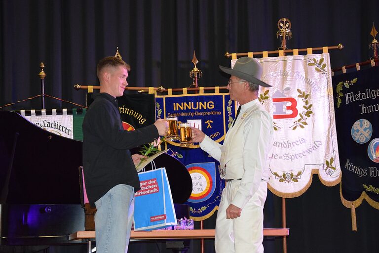 Vizepräsident der Handwerkskammer Cottbus, Ronny Wagner: "Sie haben sich für eine Ausbildung in der spannendsten Branche entschieden - dem Handwerk! „Wir machen Karriere mit Gefühl“ ist das neue Motto der Imagekampagne des Handwerks, denn im Handwerk verstehen wir Karriere nicht als einen kalten Wettstreit, sondern als einen erfüllenden Weg. Dabei entsteht das gute Gefühl, etwas zu schaffen, das tatsächlich gebraucht wird. Und besonders wichtig: Karriere im Handwerk geht man nicht allein. Sie entsteht gemeinsam – als Teil einer starken Handwerksgemeinschaft. Liebe Gesellen, genießen Sie nun den weiteren Tag und lassen Sie sich von Ihren Liebsten feiern. Sie haben es sich verdient! Ich wünsche Ihnen für Ihre Zukunft alles Gute und dass Sie nie aufhören Ihre Ziele zu verfolgen!"