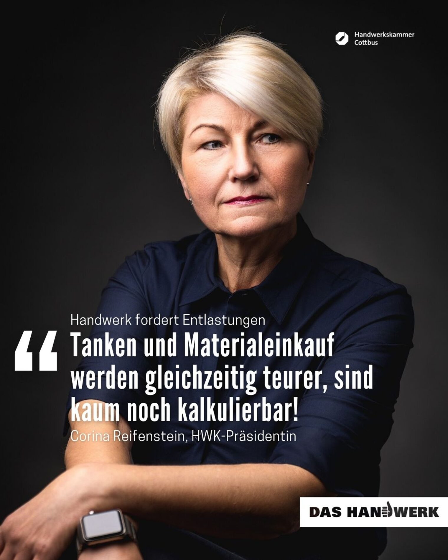 Für den brandenburgischen Handwerkskammertag erklärt Corina Reifenstein, Präsidentin der Handwerkskammer Cottbus: