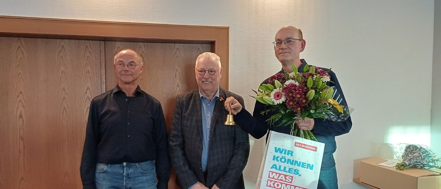 v.l. stellvertretender Kreishandwerksmeister Andreas Mönke, "Altmeister" Gerald Krüger, neu gewählter Kreishandwerksmeister Kraftfahrzeugtechnikermeister Knut Wischmann.