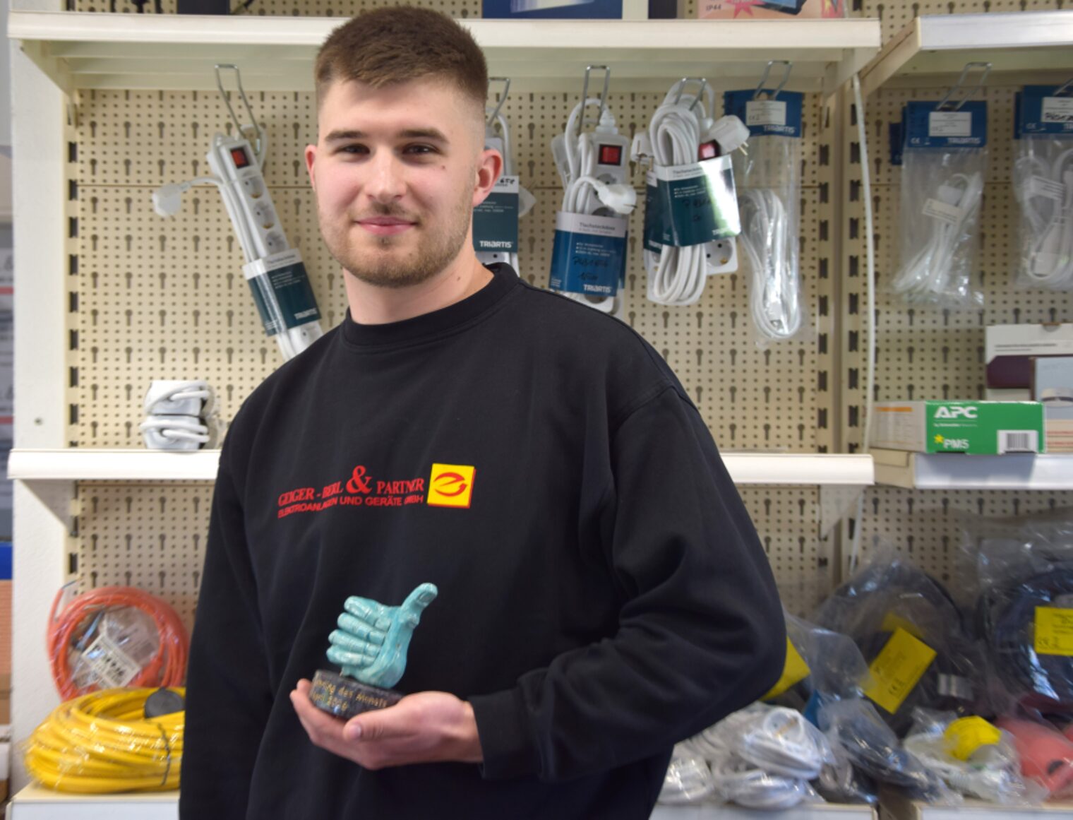 Auszeichnung für Spitzenleistungen, Ehrgeiz und Struktur im ElektrohandwerkLeroy Jacobasch: 23-Jähriger Junghandwerker mit Zukunft ist Lehrling des Monats