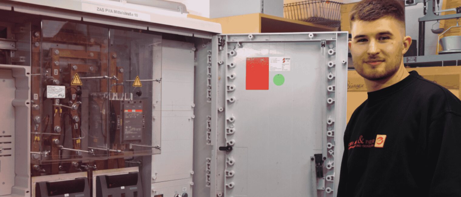 „Mein Interesse an Elektronik ist fast schon familiär geprägt“, berichtet Leroy. „In meiner Familie gibt es mehrere Elektroniker. Mein Opa hat mir zu Hause immer wieder kleine Dinge gezeigt, die meine Neugier geweckt haben. Das motivierte mich, die technischen Zusammenhänge besser zu verstehen. Dass der Beruf anspruchsvoll ist, war mir von Anfang an klar – genau das hat mich gereizt.“ Leroy sucht bewusst Herausforderungen und schätzt die vielfältigen Lernmöglichkeiten in einem größeren Unternehmen mit breitem Leistungsspektrum. Von Elektroinstallationen für private Haushalte bis hin zum Netzausbau für die Digitalisierung von Schulen oder der Umsetzung elektrotechnischer Systeme wie Beleuchtung-, Sicherheits- und Steuerungstechnik in öffentlichen Gebäuden erhält er Einblicke in unterschiedlichste Projekte.