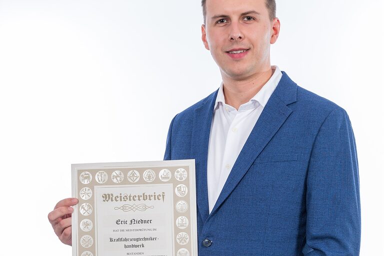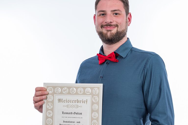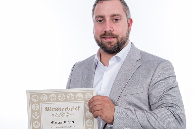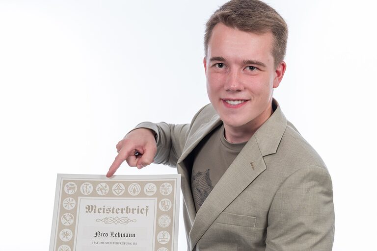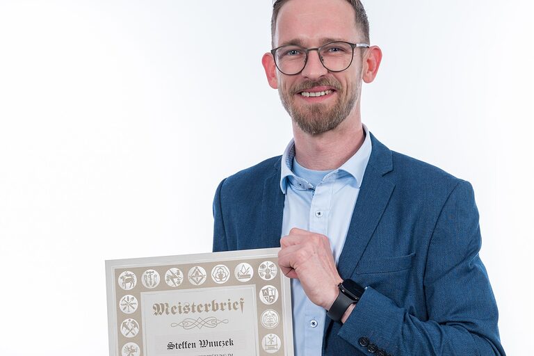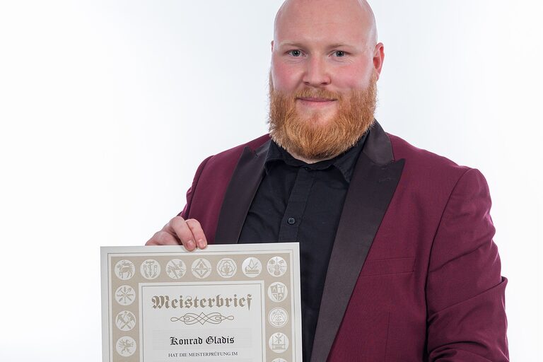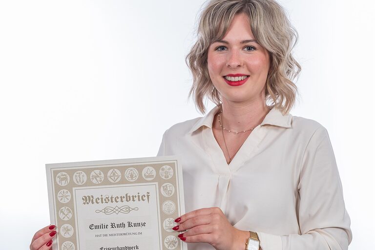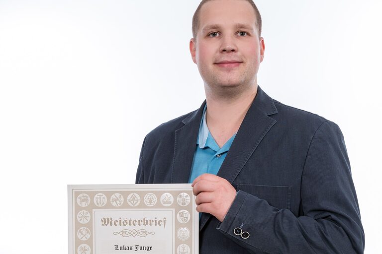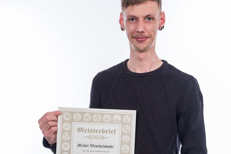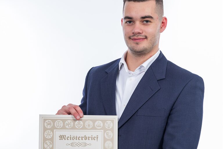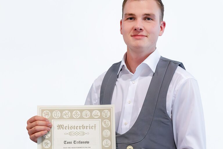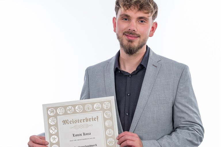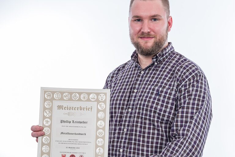 Hier auf dieser Seite finden Sie im Oktober die Meisterporträts des Jahrgangs 2024/2025, die beim "Tag des Meisters" in der Cottbuser Stadthalle im Foyer gemacht wurden.