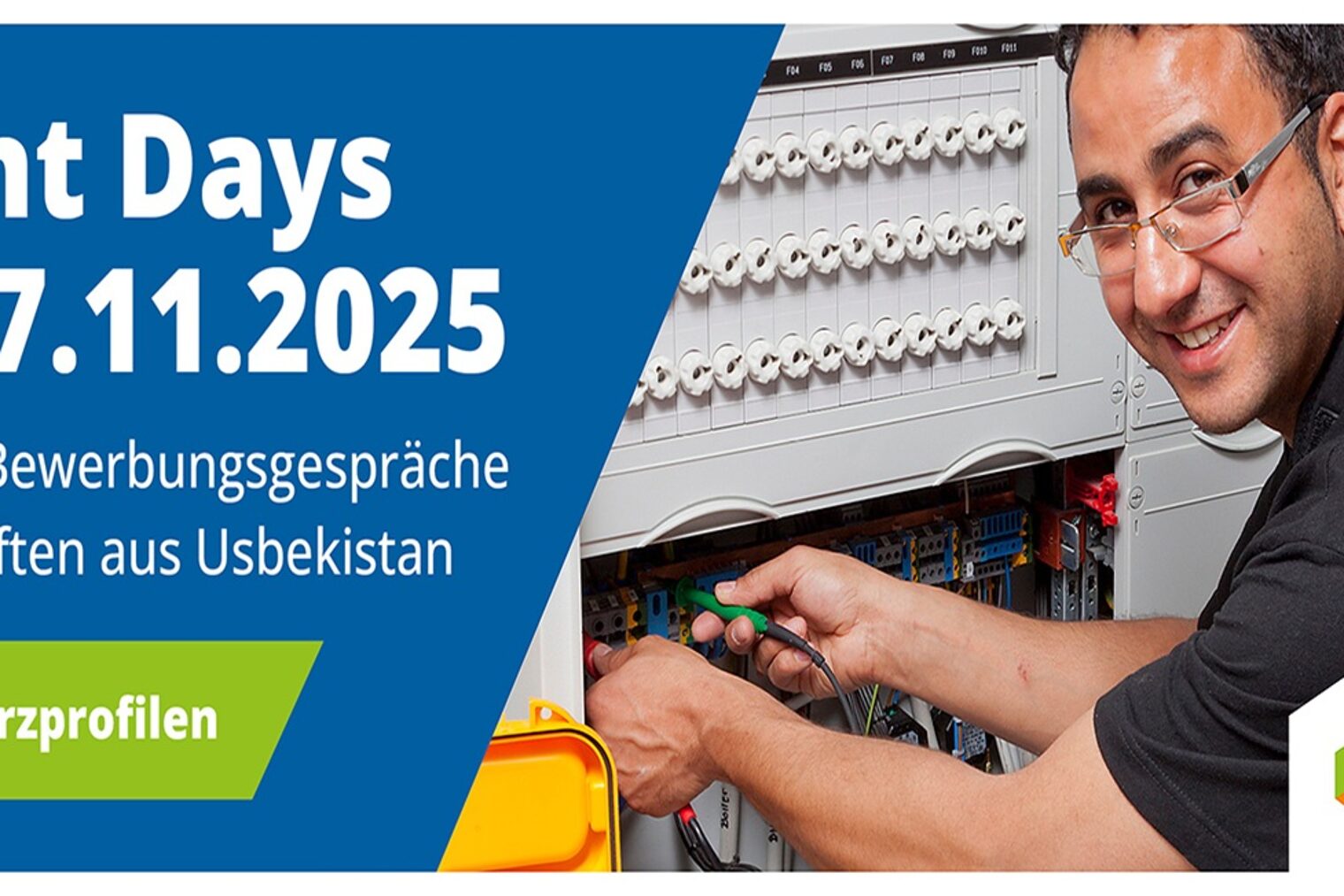 Während der Talent Days haben Betriebe die Möglichkeit, in begleiteten Online-Vorstellungsgesprächen qualifizierte Fachkräfte unterschiedlicher Gewerke aus Usbekistan kennenzulernen.