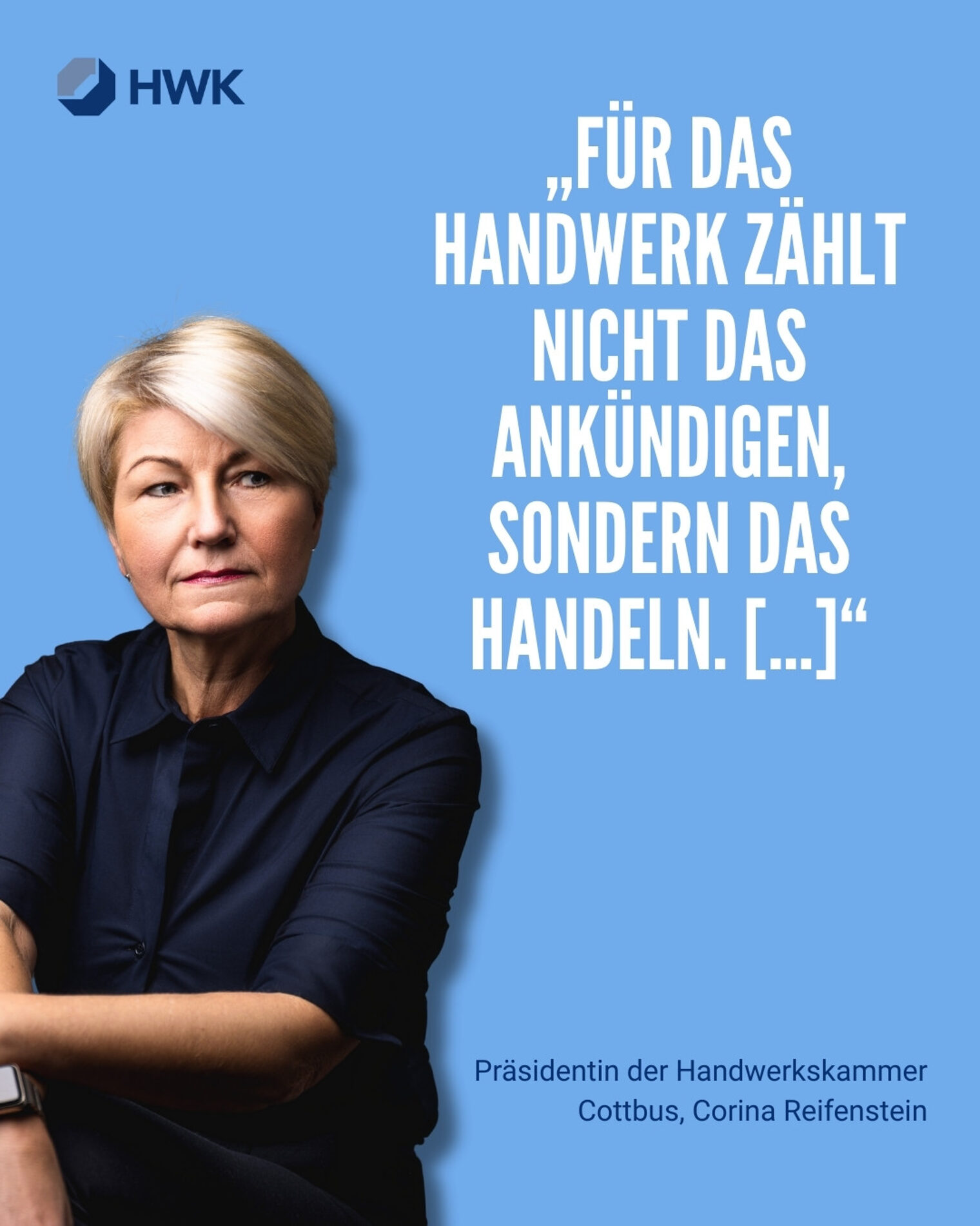 Die Präsidentin der Handwerkskammer Cottbus erwartet von der neuen Landesregierung ein klares Signal: „Bürokratieabbau duldet keinen Aufschub. Wer den Bau ankurbeln will, muss jetzt entscheiden – im Interesse der Betriebe, der Bauherren und des Wirtschaftsstandorts Brandenburg.“