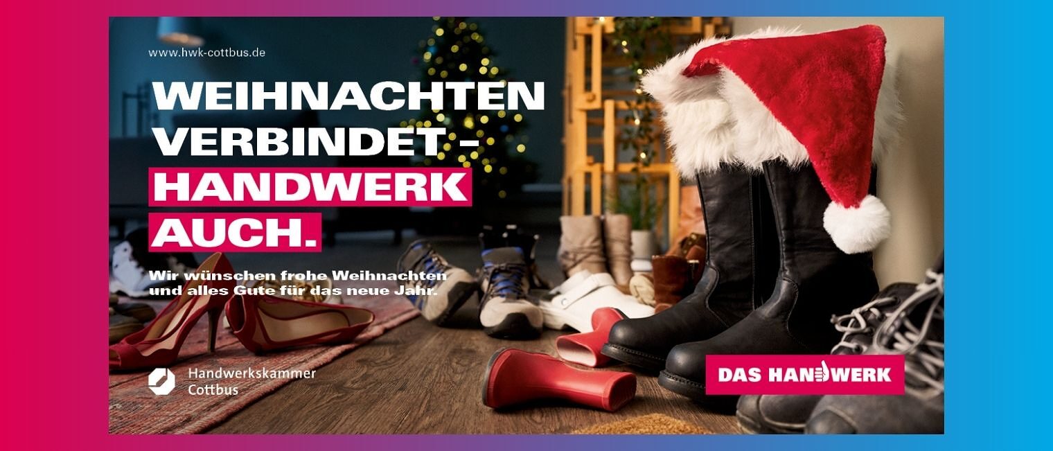 ein sehr turbulentes Jahr liegt fast hinter uns und wir wünschen uns nichts sehnlicher, als eine friedliche Verständigung auf allen Ebenen. Wir wünschen Ihnen und Ihren Familien eine schöne Weihnachtszeit und ein hoffnunsgvolles neues Jahr, in dem wir gemeinsam unsere Arbeit für das südbrandenburgische Handwerk fortsetzen.